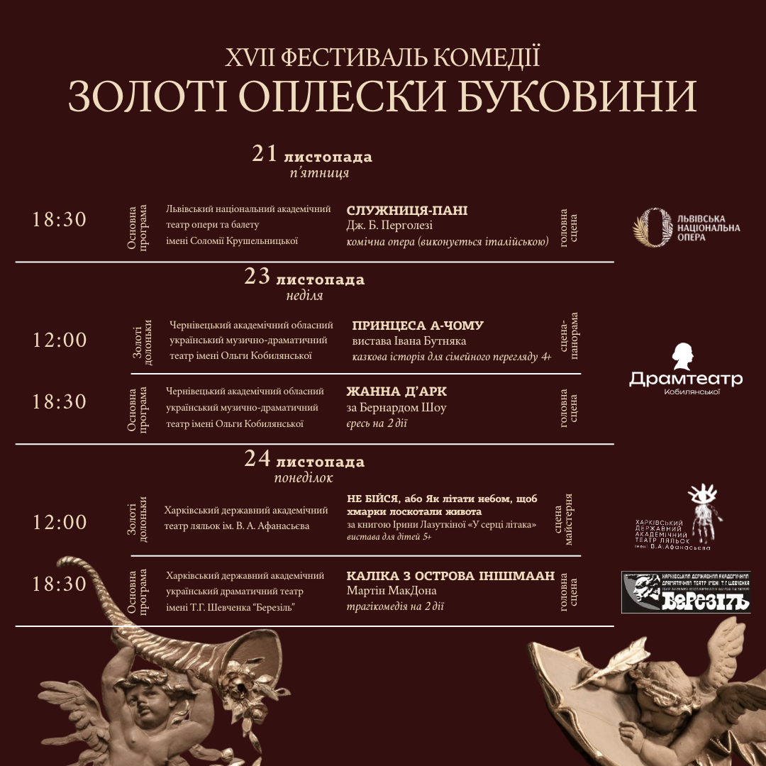 Запрошуємо чернівчан та гостей міста долучитися до XVII фестивалю “Золоті оплески Буковини” та насолодитися різноманіттям української театральної культури.